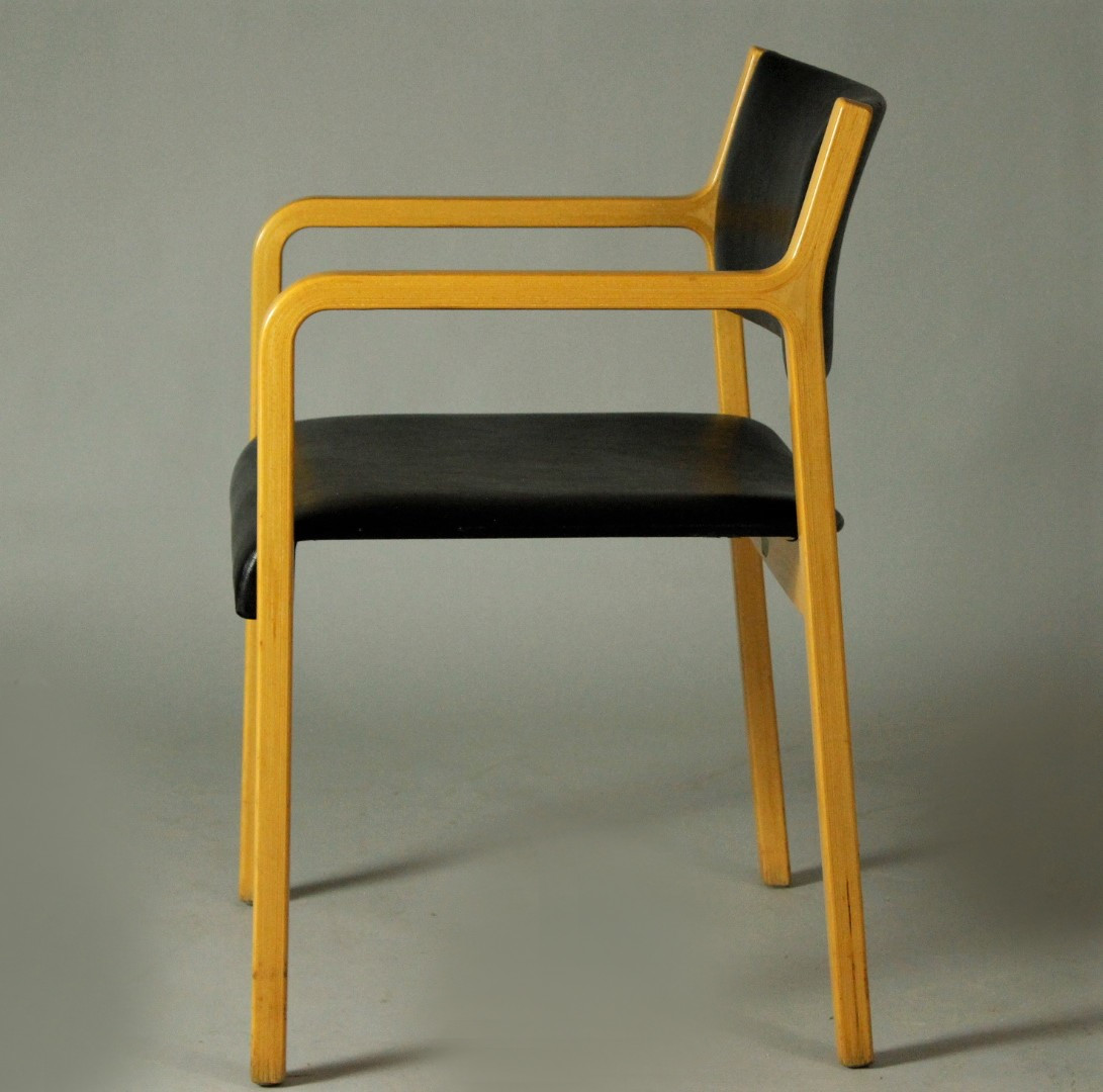 Large bentwood armchair designed by Wilhelm Ritz and produced by Wilkhahn in the 1960s. The wooden frame is made of bentwood, the upholstered seat and backrest is covered with black Skai. This armchair is in good condtition with patina.